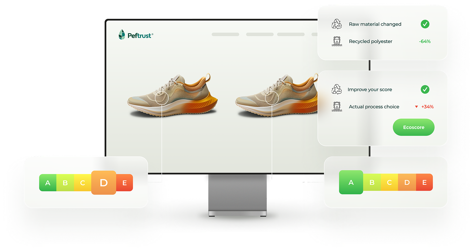 Constructed for Product Designers and Sourcing Teams, the Peftrust Ecodesign module enables users to conduct real-time product LCA simulations. in particular, it allows for the comparison of limitless combinations of materials, processes, and supply chain scenarios.